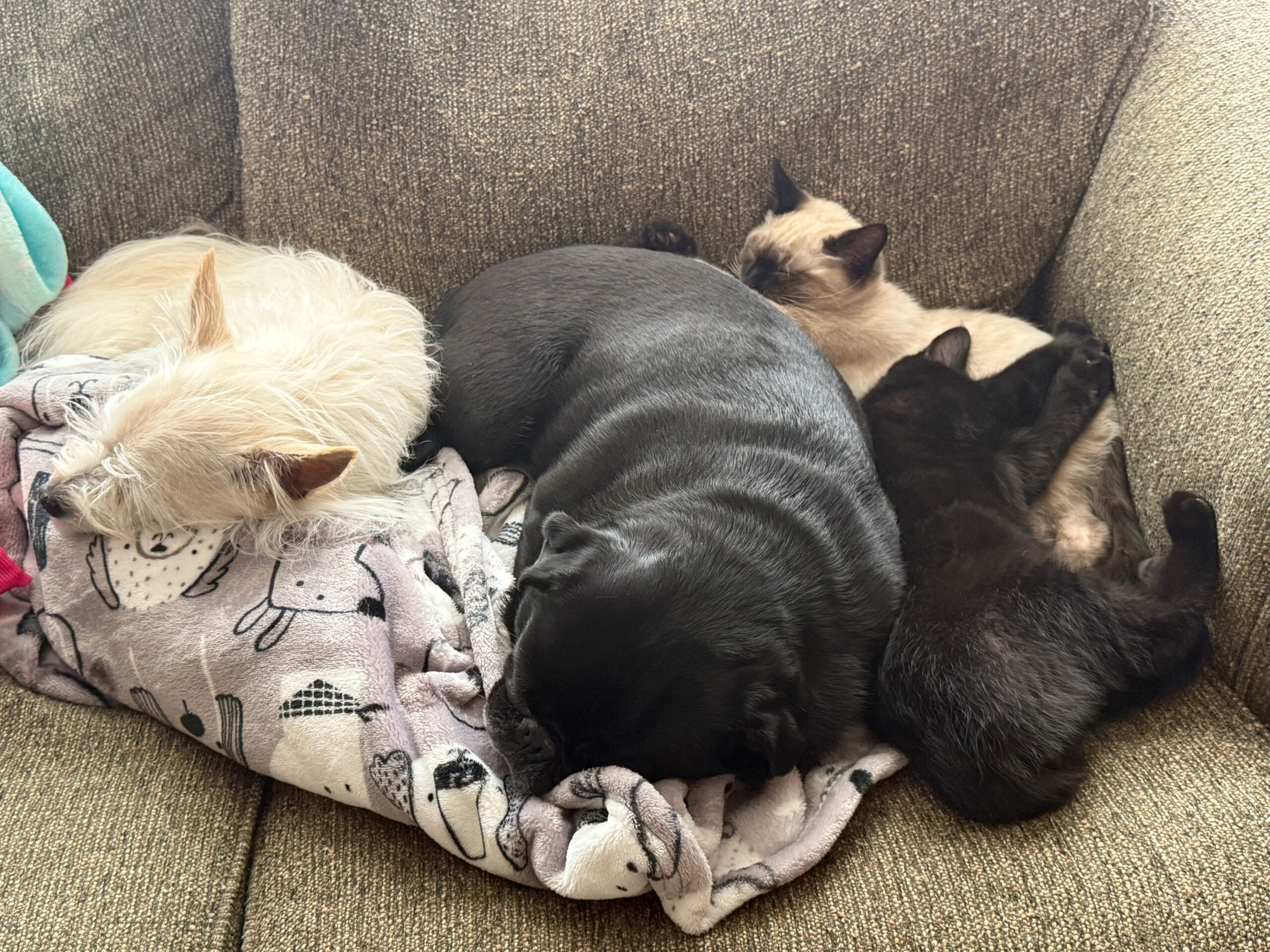 In other news, we now have two cats! They came to us as little kittens and now they are already small cats. Or kitten cats as I like to call them! They are awesome and everyone is having so much fun with them. There are some photos of the boys below including one with our dogs. Most of the photos are of them sleeping because they’re usually zooming around the house!